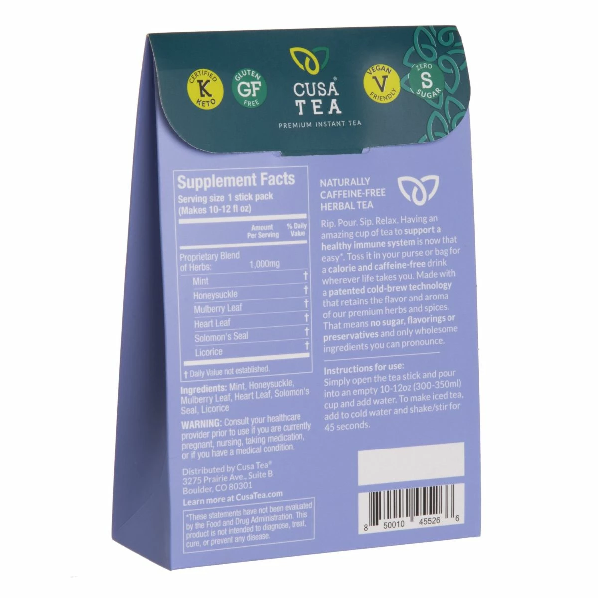 Made with mint, honeysuckle, mulberry leaf, heart leaf, Solomon’s seal and licorice for a refreshingly minty flavor. Perfect for an iced afternoon beverage or warm evening tea that won’t keep you up. Zero grams of sugar, but with a slightly sweet flavor from the licorice.