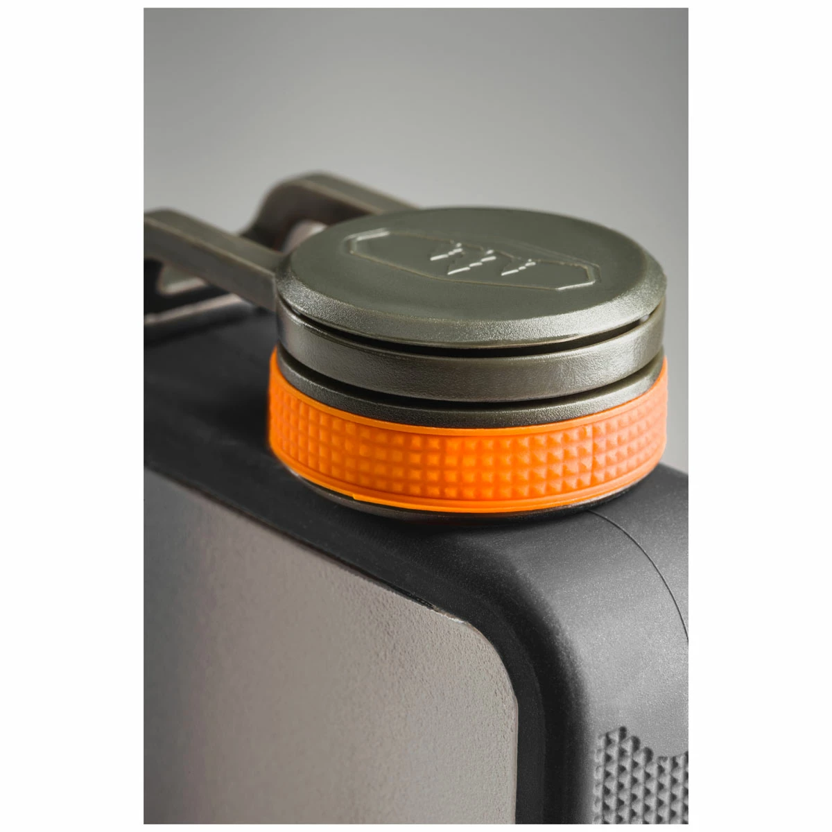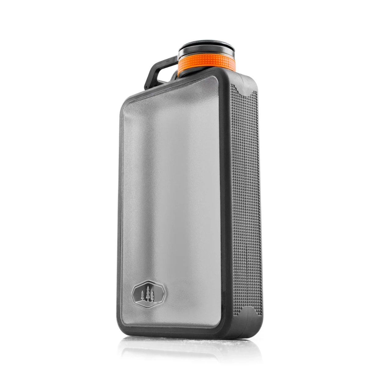 Your favorite beverage can now go anywhere in the GSI Boulder Flask. Includes graduations for measuring and can take any fall with the sleek bumper flask. The Boulder 10 Flask holds 10 fl oz, has a shatter-resistant body with bumper, graduations, and a hinged silicone cap making it impossible to misplace.
