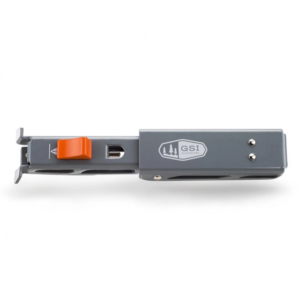 GSI’s nForm Pot Gripper is a super-compact, folding pot gripper for use with GSI’s Bugaboo and Pinnacle series of pots and pans. Locks and unlocks easily from exterior brackets and folds down to nest inside any cookware system.