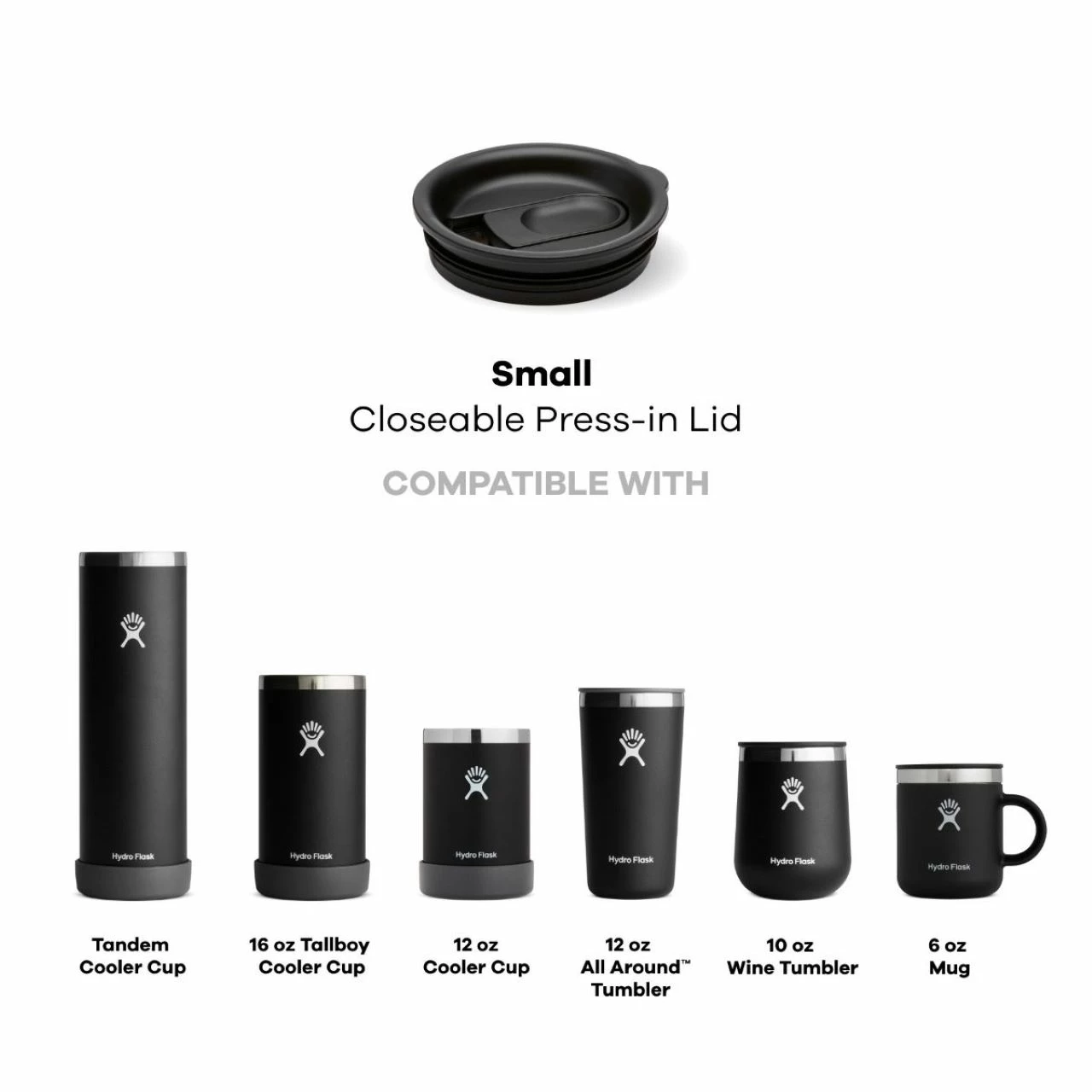 The Hydro Flask Closeable Press-In Lids slide shut to tame splashes and trap temps, then slide open wide enough for easy drinking and reusable straws.