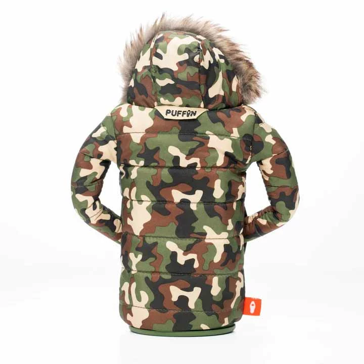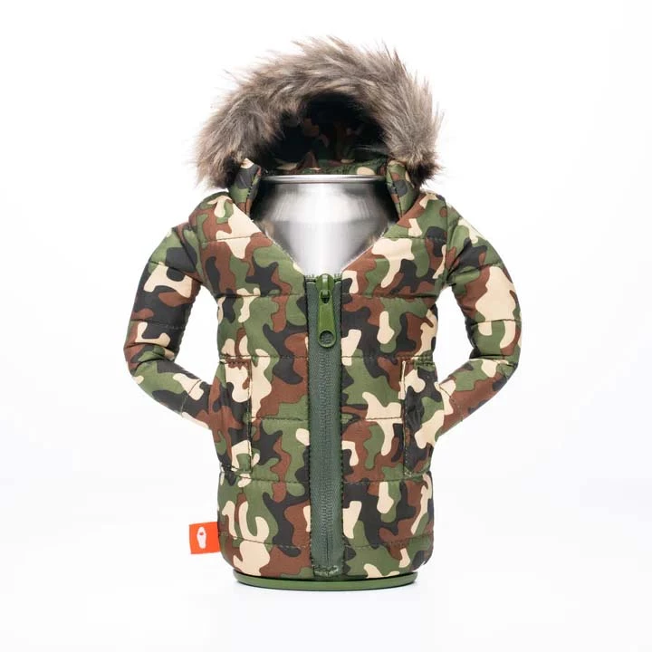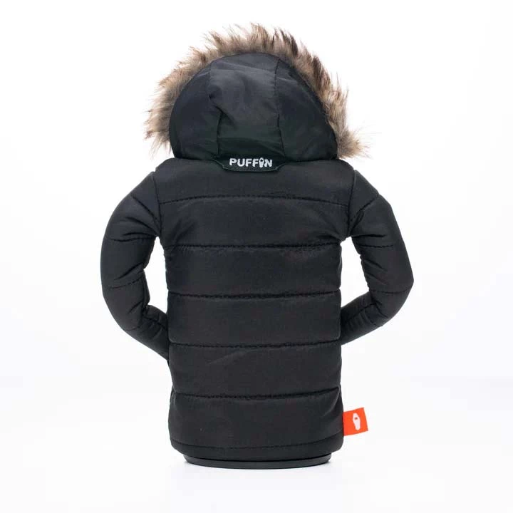 Add some flare to your winter drinkwear wardrobe with a cozy Puffin Parka. The faux fur-lined hood brings a touch of glamour to a timeless classic. This diva will keep your drink cold and looking fabulous.