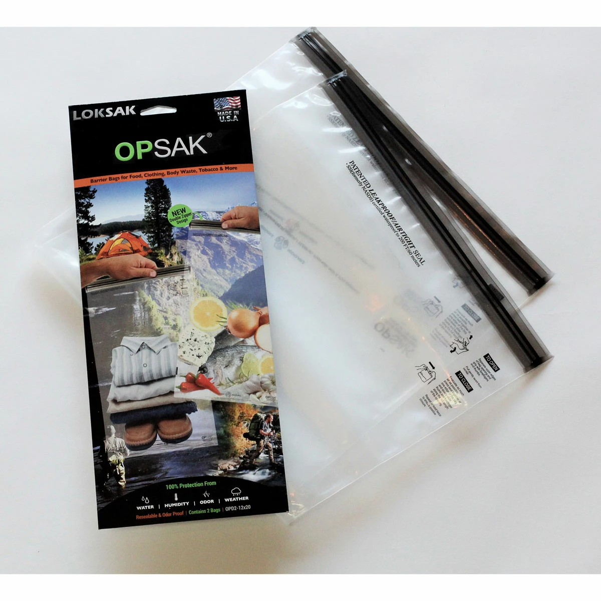 This 12 x 20 inch sealable plastic bag is made from special film that is 17,000 times more odor resistant than HDPE. When used properly, the OPSak is 100% water- and airtight. New double zip closure. Each bag weighs about 1 ounce. Use with Ursack to keep bears and other critters from smelling your food. The OPSak fits all Ursacks (One OPSak will work for the Major XL if it’s not overstuffed; otherwise two OPSaks are needed for the Major XL.)